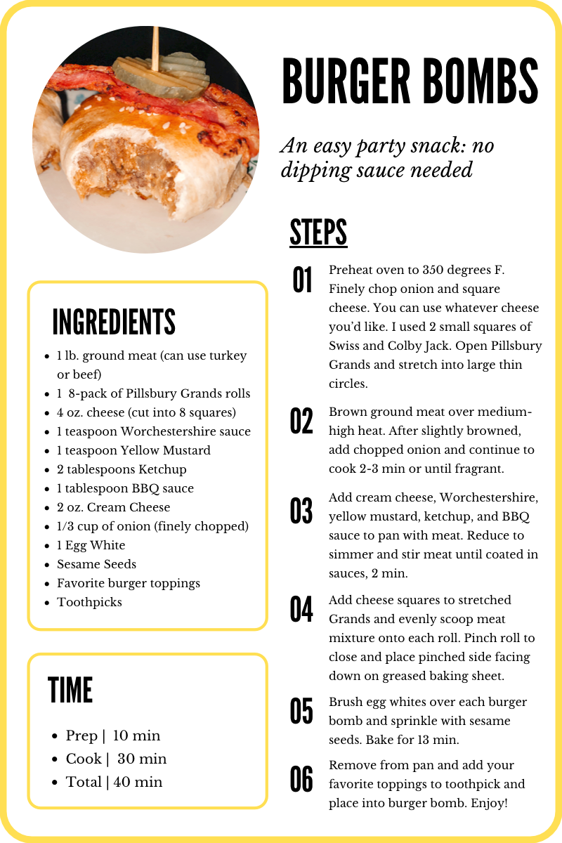 Here is my recipe for my Burger Bombs! They are so filling and the perfect thing to take to a party or to make for a Sunday full of football. The best part, no dipping sauce needed and everyone can add their favorite toppings! Recipe card at the bottom.