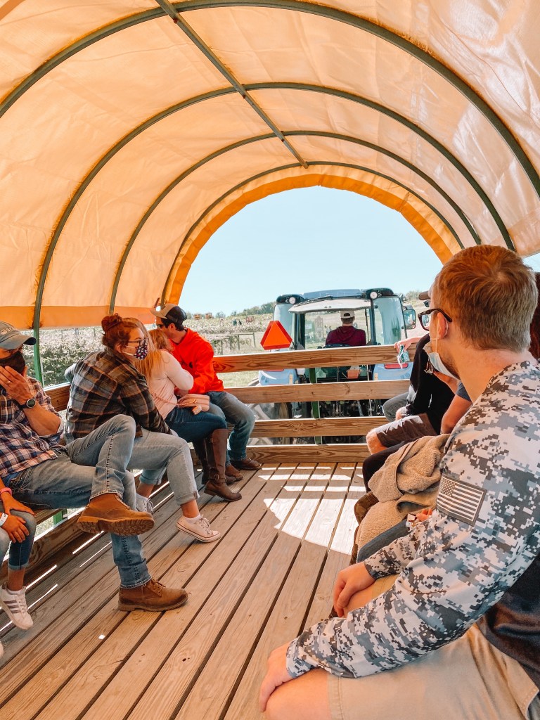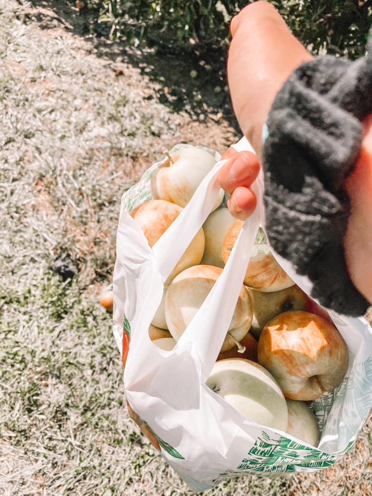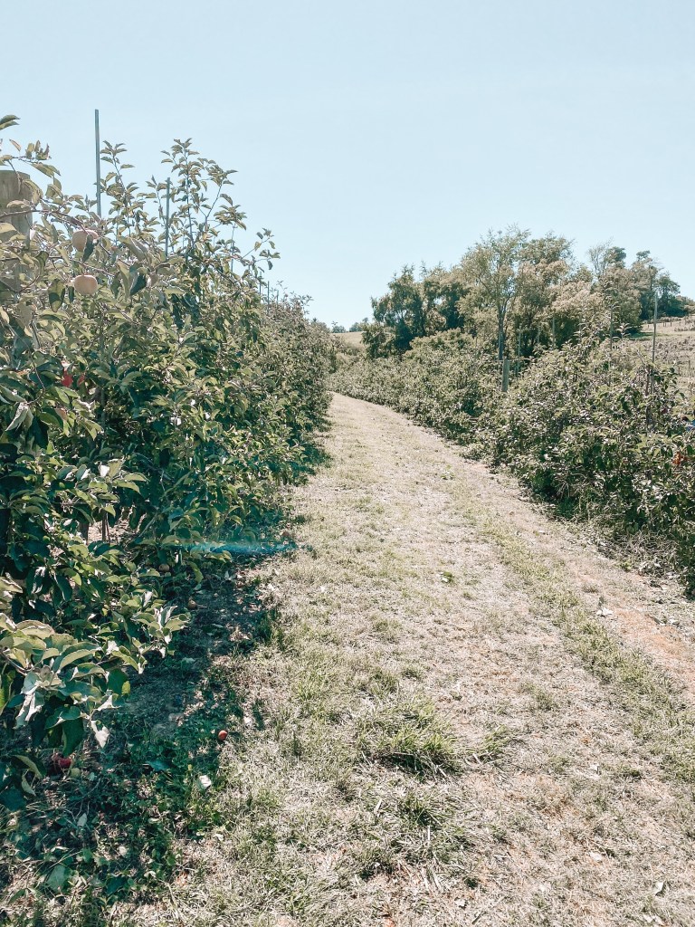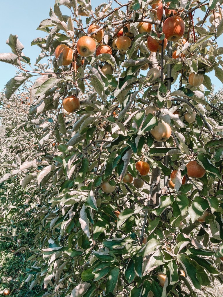 When we finished up with the animals, we hopped on the hayride that was included in our wristband pass. It took us first up to the apple orchards where they had 5 rows of apples and 2 different types for picking. I had no idea different apples were used for different things, but the workers helped direct us towards the “baking” apples and the “snacking” apples.