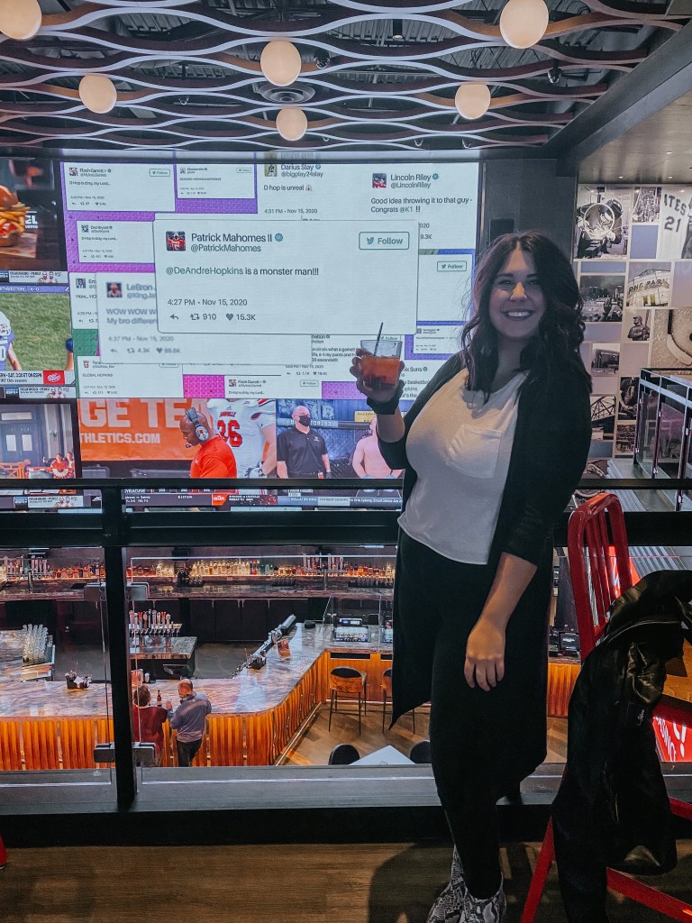 The first bar is Sports & Social Steel City located upstairs overlooking the sports betting area of the casino. This bar is equipped with a 40ft. screen to watch all the games and a screen with the FanDuel sportbook making it perfect for any sports fan. This bar also has a pub food style menu with selections like a Nashville hot chicken sandwich, caramelized pierogis and nachos. I got to try the Nashville hot chicken and the chicken and waffles and they were DELISH. As far as entertainment, S&S also has pay to play games and free games including foosball, skeeball, bowling, a golf simulator & more. During Steelers games, they have DJs and trivia to heighten the game day experience!