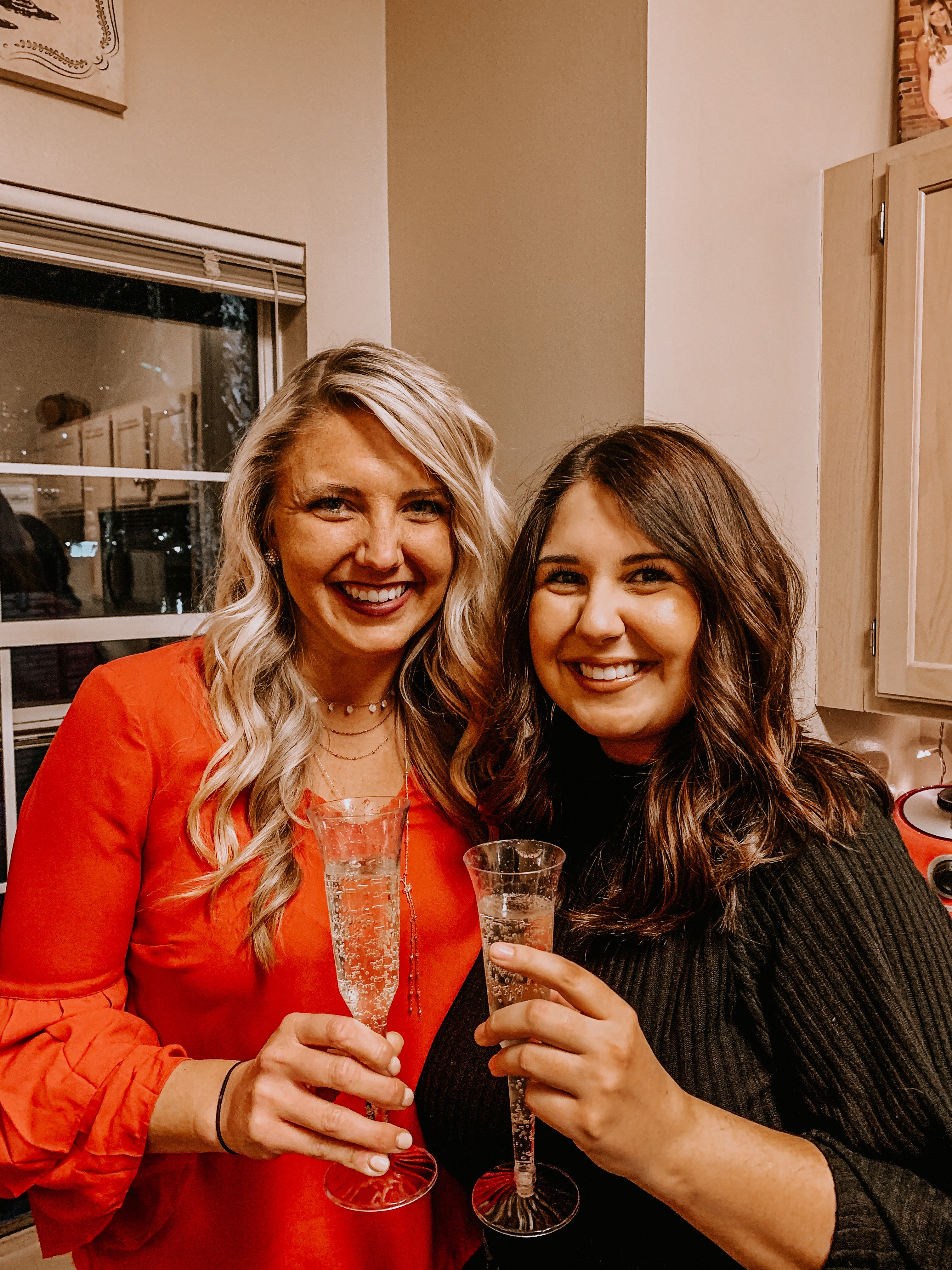 We invited around 25-30 people arriving around 4:00pm and knew we would have to provide some substantial food because people would be there for the long haul. We decided to make Buffalo chicken dip, pasta salad, spinach dip, chips, guac, salsa, cookies, cupcakes, brownies & more. Everyone chipped in and brought a snack or alcohol which worked out perfectly. Later in the evening you can feel out the vibe and decide if you want to order pizza as the party really settles in. We ordered 3 pizzas about 3 hours into the party. For alcohol we provided a few cases of Truly’s, a box of Barefoot Rosé and a box of Barefoot Red Blush. Between everyone we also had about 20 bottles of champagne. It was perfect! People also brought some of their own drinks as well.