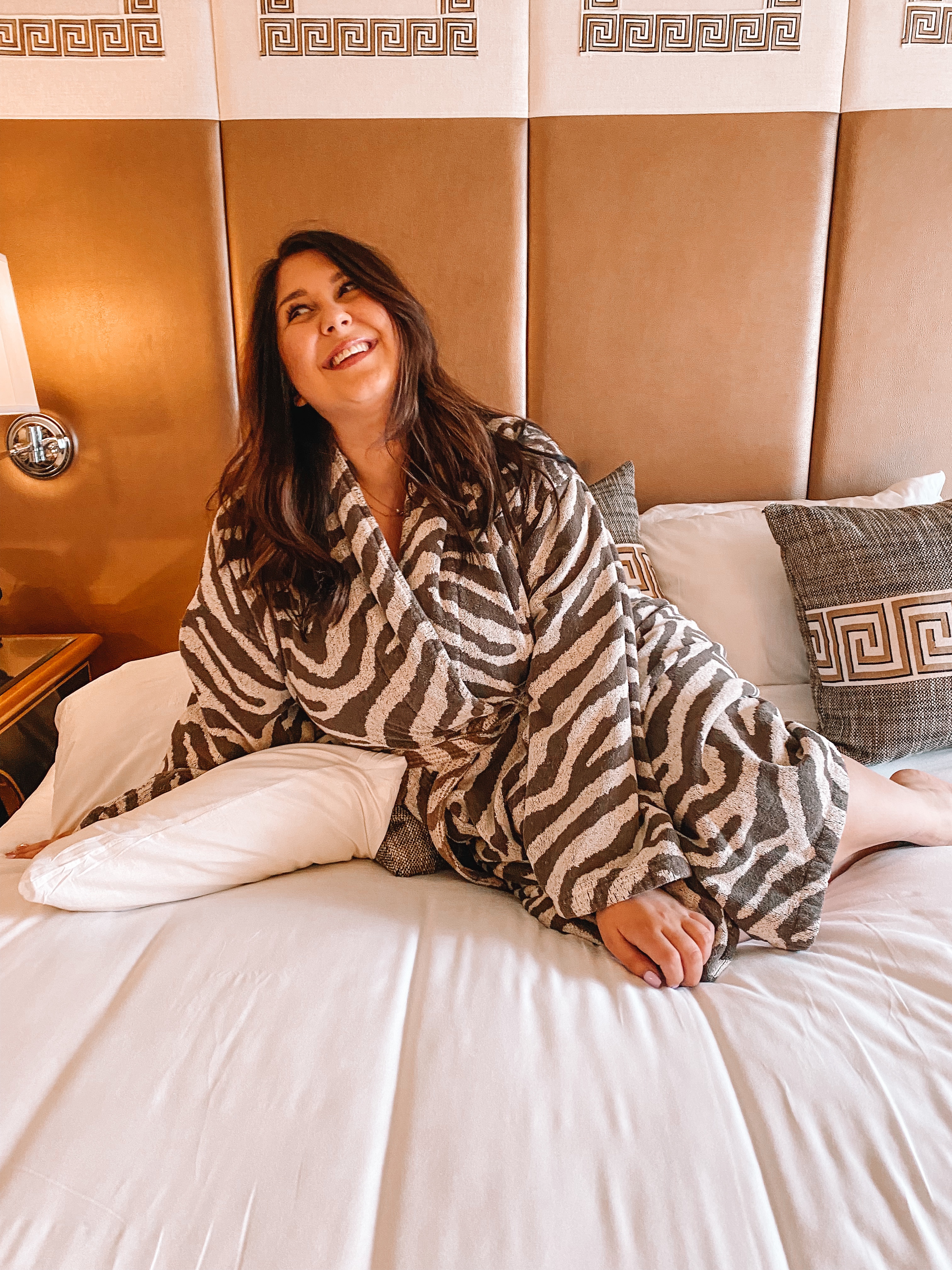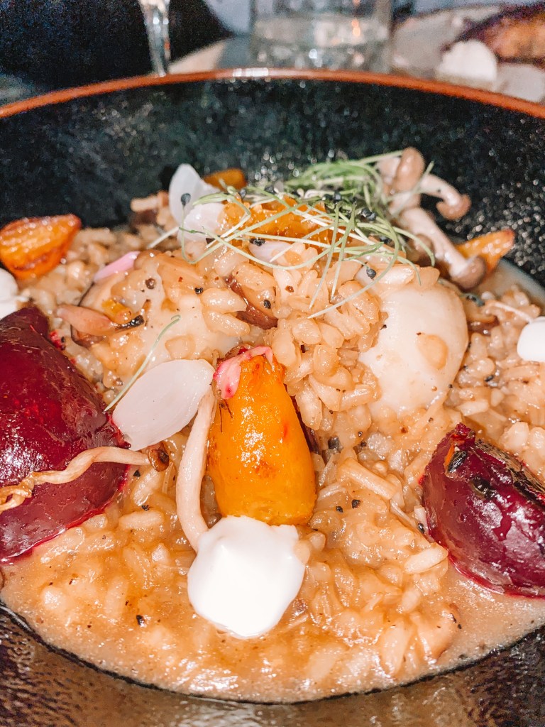 Oftentimes, travelers discredit hotel restaurants because, well they are hotel restaurants. I will tell you firsthand, DO NOT underestimate the excellence of Kimpton hotel restaurants. They have style, class, an array of beverage selections, and fantastic meals. Dirty Habit was no exception to this trend! The low lighting and high ceilings made this dining experience very chic. To start, we ordered a bottle of Chardonnay to split. Our waitress was extremely knowledgeable about the standout dishes at Dirty Habit and had completely sold me on working the scallops into my meal on some level. Ultimately, I decided to add the scallops to my entree instead of ordering the scallop starter. My meal was the risotto which was hands down the most flavor-rich risotto I’ve ever had. The creamy risotto base paired perfectly with the local mushrooms, juicy beets, fresh mozzarella pearls, and seared scallops. I would truly eat this meal every week if I could. My friend ordered the Pan Roasted Atlantic Salmon with crispy potato salad. She loved the variety of textures and flavors from this non-traditional pairing! After dinner, we headed up to our hotel room 2 floors up from Dirty Habit, which proved EXTREMELY convenient with the inclement weather that night, and relaxed for the remainder of the evening (PS: the complimentary in-room robes are a cozy little blessing).