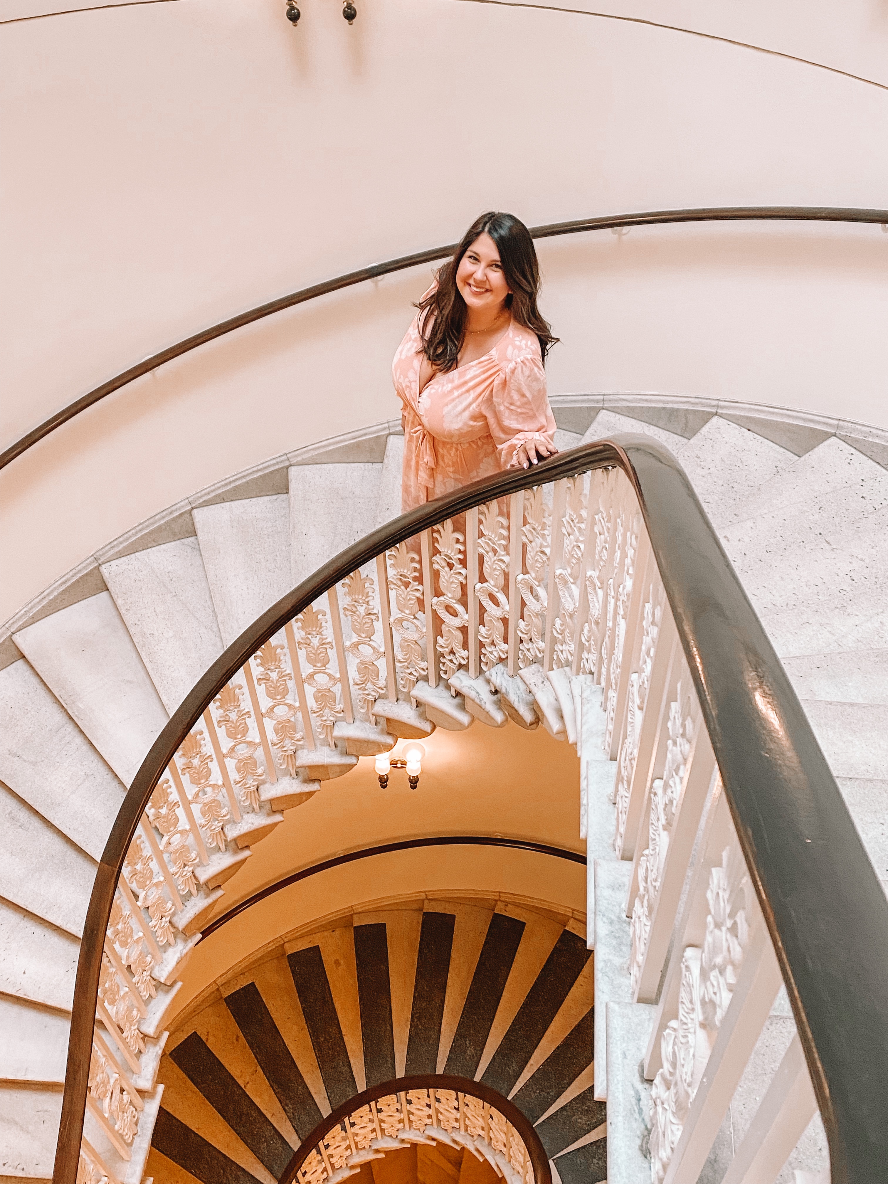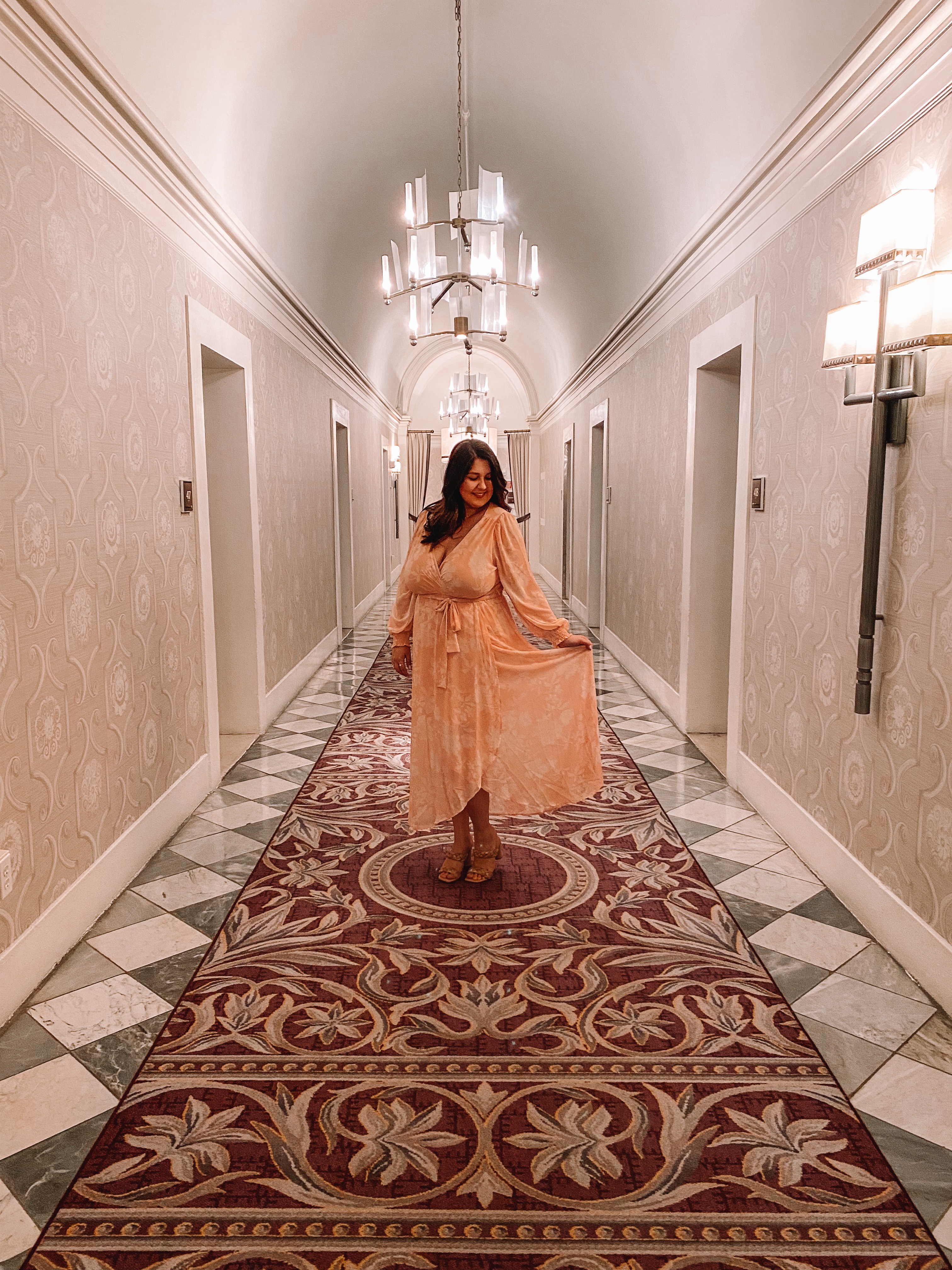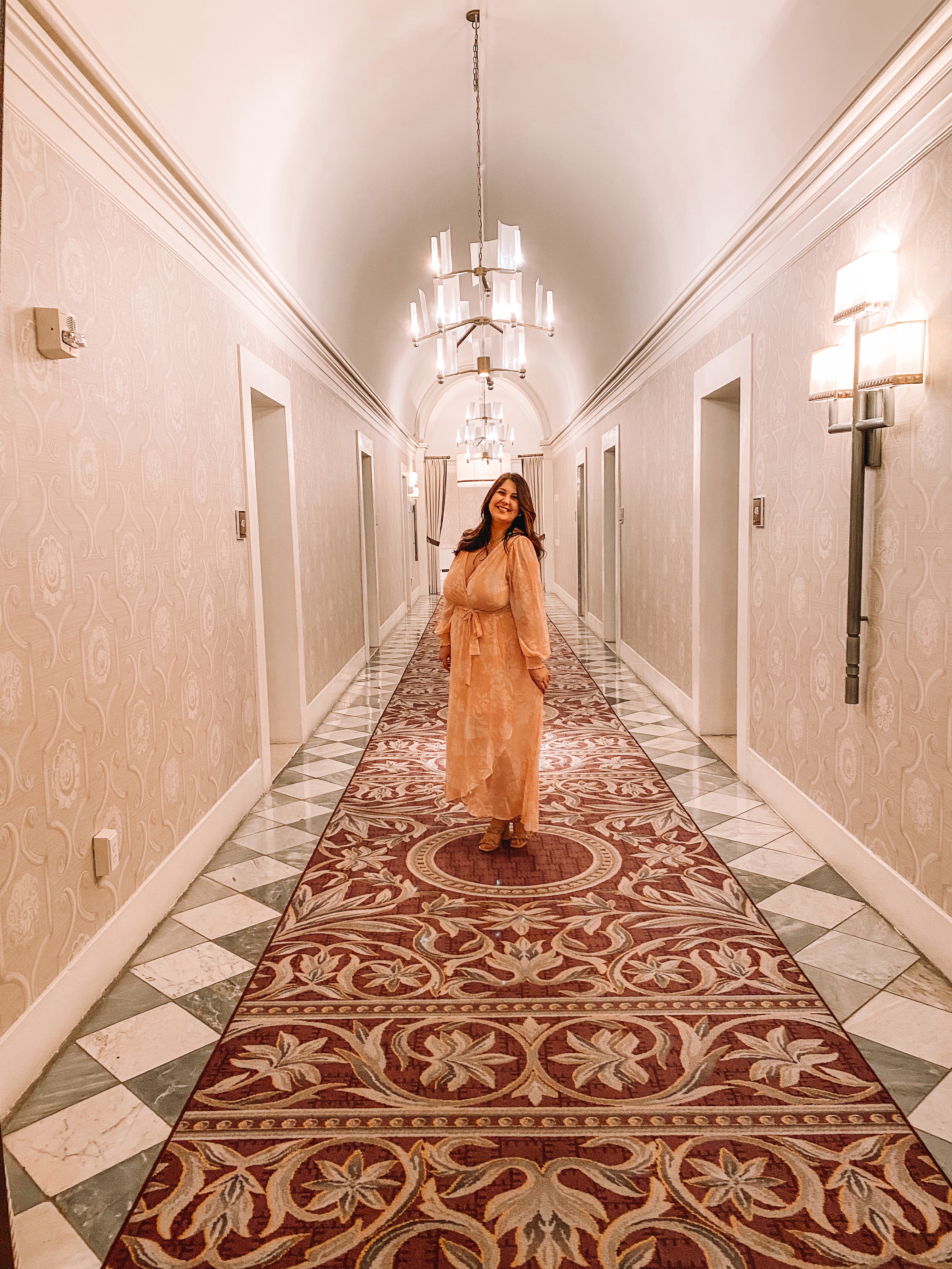 The late evening lead us to a 4-city exclusive activity, the Bridgerton Experience! I’m telling you DC serves up EVERYTHING. This experience is currently only available in Los Angeles, Chicago, Montréal, and DC. I will have a post going live specifically recapping the Bridgerton Experience on my website in the coming weeks. We attended the last session on Friday so we finished around 11 pm and headed back to Hotel Monaco DC. When we got back, we noticed an event going on in the ballroom at the end of our hallway (the balloon arch was an easy giveaway). If you’re looking to book a wedding or other event at Kimpton Hotel Monaco DC, visit their site here for more information. The beautiful ceiling and staircase pictured at the beginning of the article are located on the side of the building leading up to the entrance to the ballroom, so there will be optimal photo opportunities.