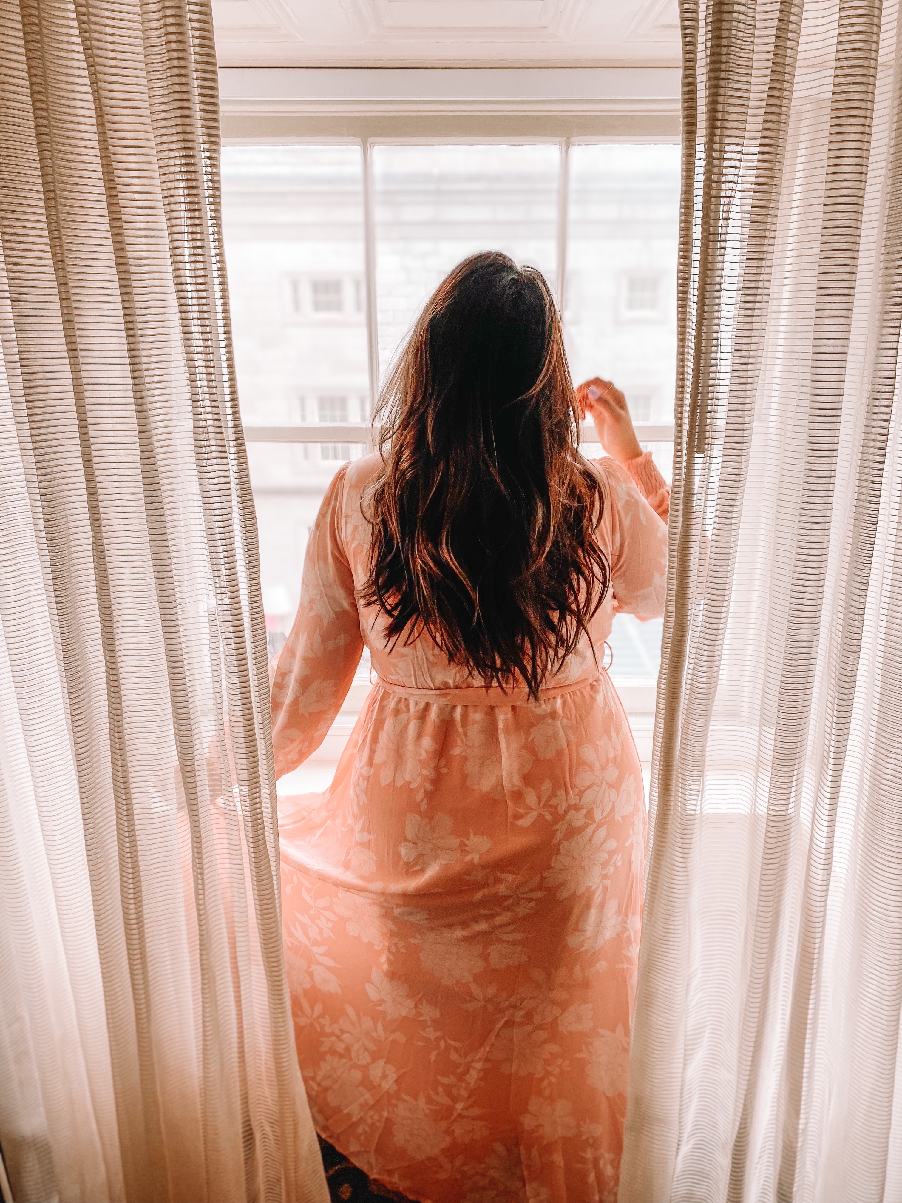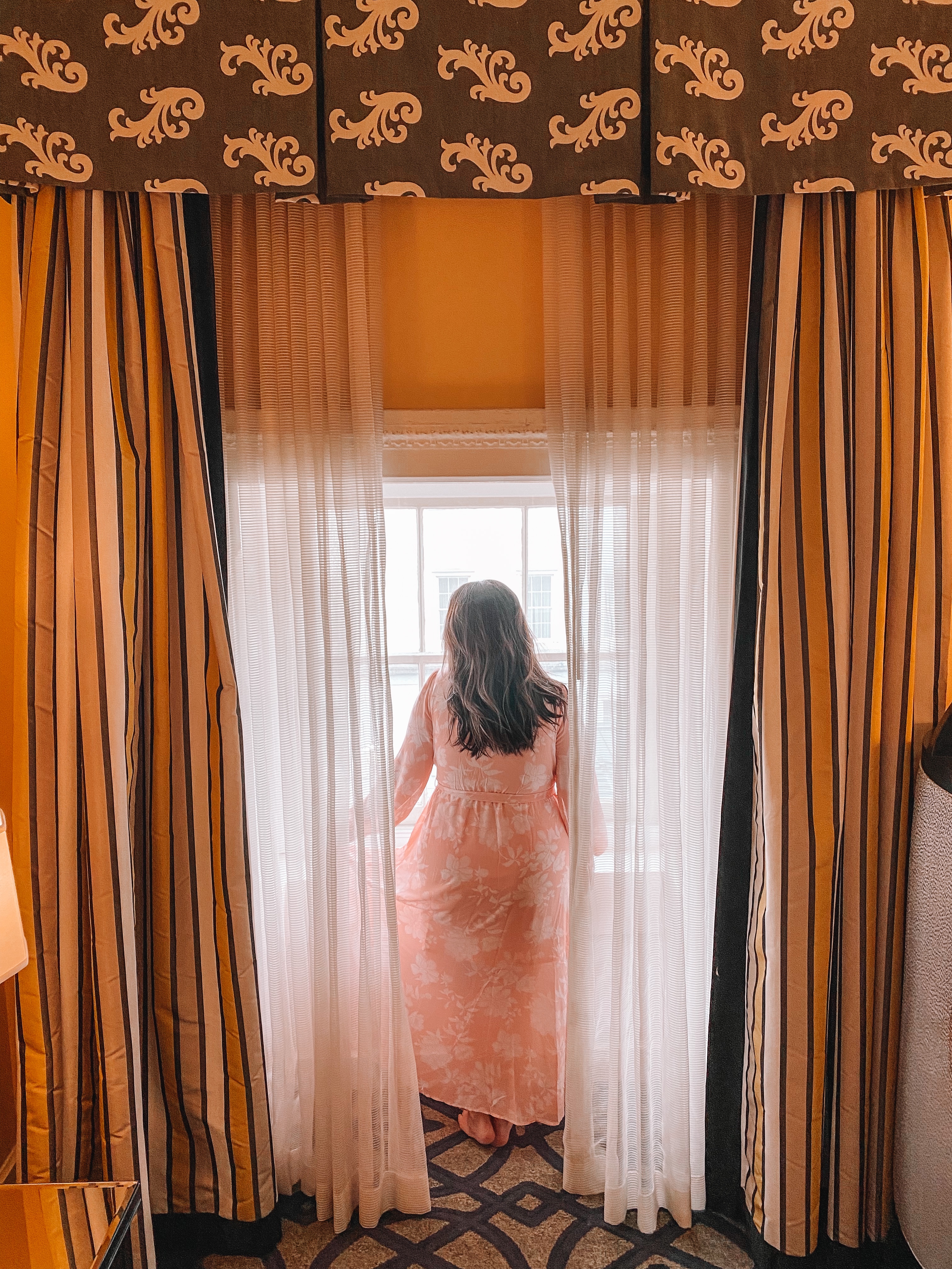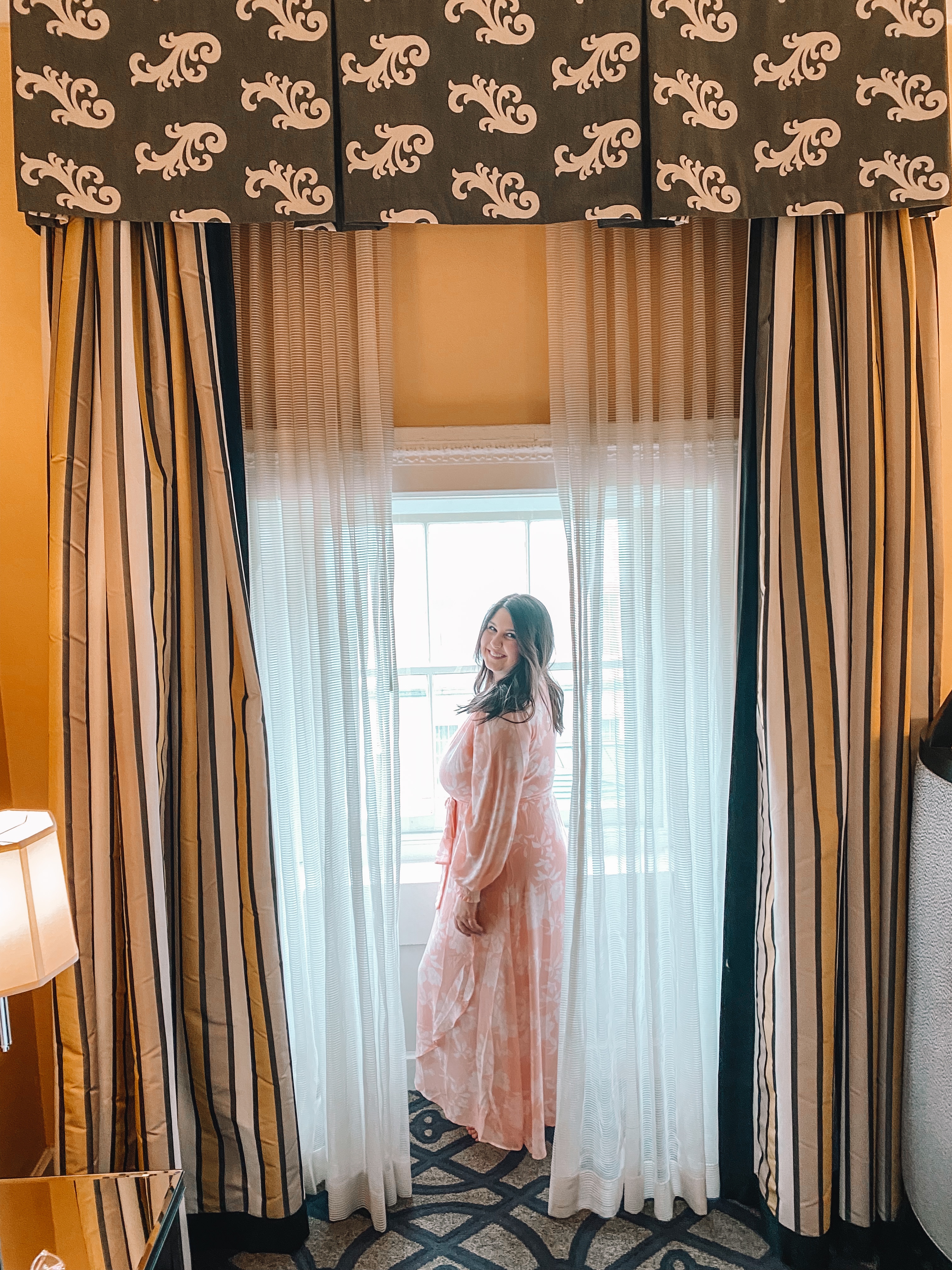 The late evening lead us to a 4-city exclusive activity, the Bridgerton Experience! I’m telling you DC serves up EVERYTHING. This experience is currently only available in Los Angeles, Chicago, Montréal, and DC. I will have a post going live specifically recapping the Bridgerton Experience on my website in the coming weeks. We attended the last session on Friday so we finished around 11 pm and headed back to Hotel Monaco DC. When we got back, we noticed an event going on in the ballroom at the end of our hallway (the balloon arch was an easy giveaway). If you’re looking to book a wedding or other event at Kimpton Hotel Monaco DC, visit their site here for more information. The beautiful ceiling and staircase pictured at the beginning of the article are located on the side of the building leading up to the entrance to the ballroom, so there will be optimal photo opportunities.