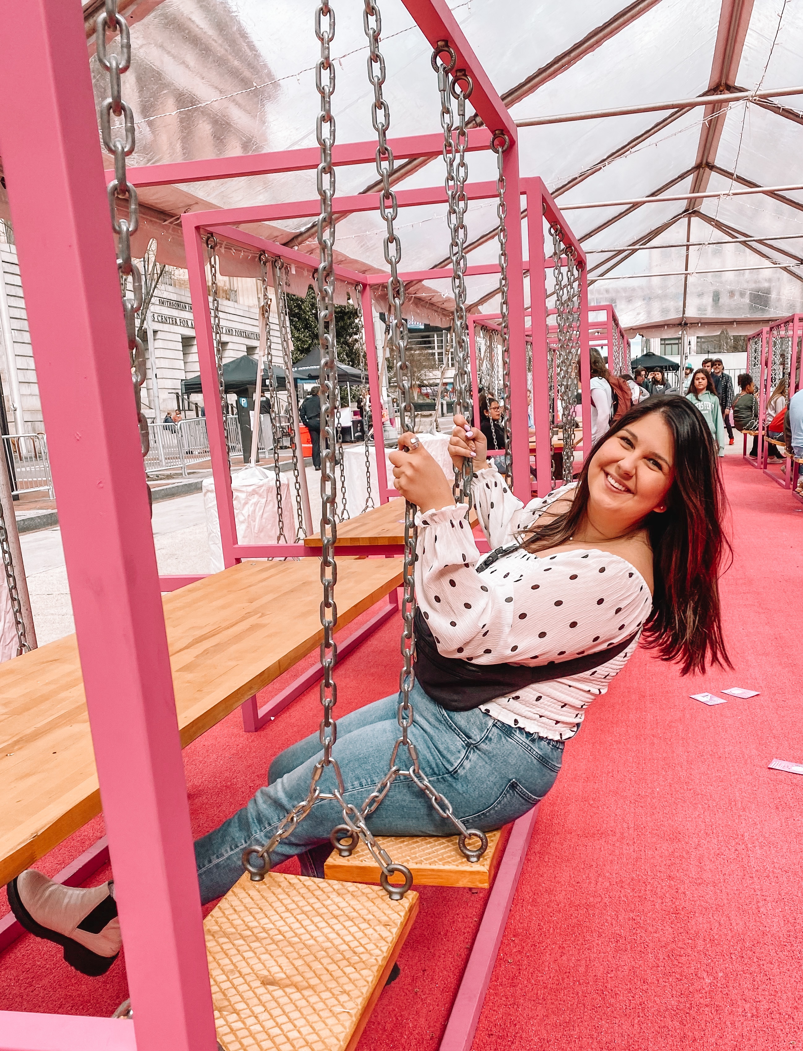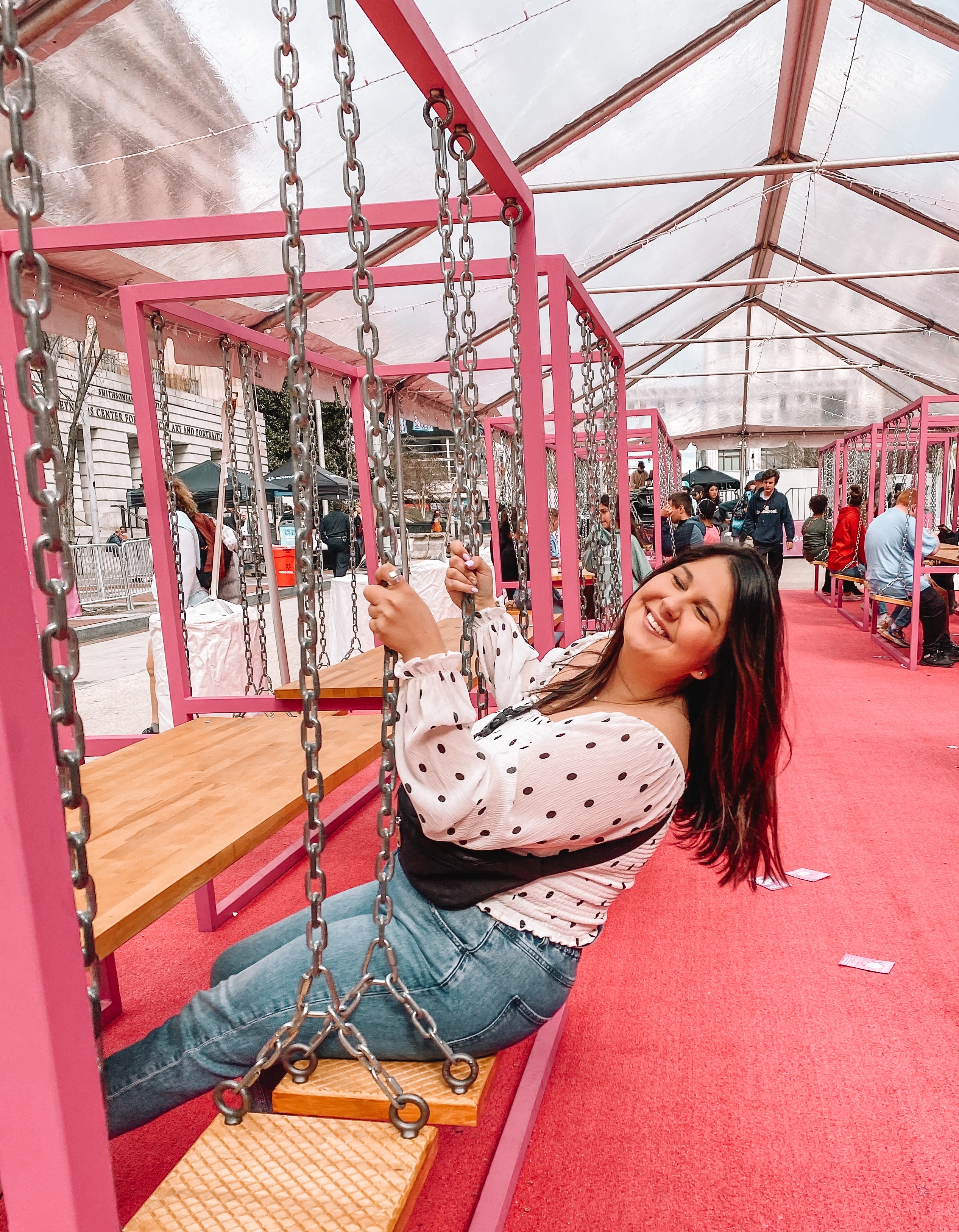 After logging off, we wanted to walk to the National Mall to look at some of the classic monuments. When we headed out of the Hotel Monaco DC lobby, we noticed a lively little evening occurring on a blocked-off portion of the street adjacent to our hotel entrance. Naturally, we strolled over to see what was going on. What we stumbled upon was the Plus Ultra Entertainment Pop of Spring Block Party! This adorable community event was free to the public and featured live musicians, food vendors, video game booths, photo booths, swing set tables, and movie screenings. We soaked in the sun and listened to music for about an hour just steps from our hotel.