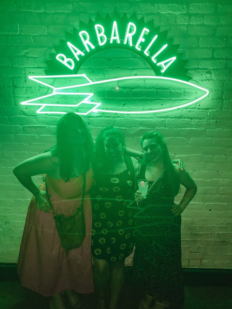 Barbarella’s is definitely an end of the night, college bar vibe. The one side of this bar has a circle shaped bar with stools around it if you don’t feel like dancing. There are cool neon type lights in this half of the bar. The other side of Barbarella has a dance floor and a small stage and DJ area. You can stand along the wall on the stage and dance or just down on the dance floor. The vibes are very “Mr. Brightside” if you know what I mean. This bar is perfect for belting out popular tunes and dropping it low even on a Thursday. The sign pictured is on the way to the bathroom, so be sure to snag a pic when your squad heads that way.