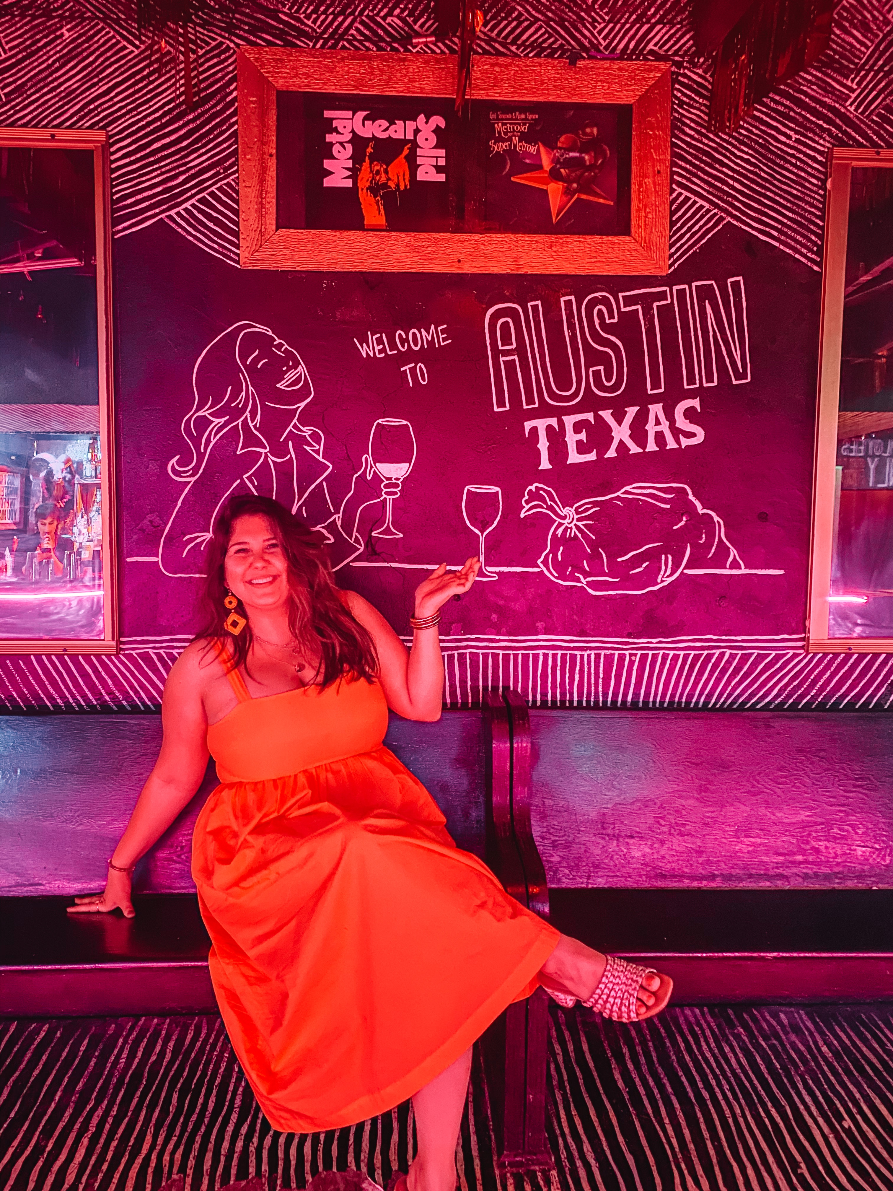COCONUT CLUB, SAY LESS. This was my absolute favorite bar I went to while visiting Austin. Thankfully my friend Tori (@endlessbrunch) brought me along to this AMAZING rooftop bar with lively dancing and a killer DJ! Sadly, the Coconut Club’s days are potentially limited as it may soon be marked for demolition. SO, this is your sign to go to Austin and visit Coconut Club ASAP. This bar offered the best views of the city’s buildings and awesome lights in sync with the DJs tunes. The photo ops were pristine and the ranch waters were even better.