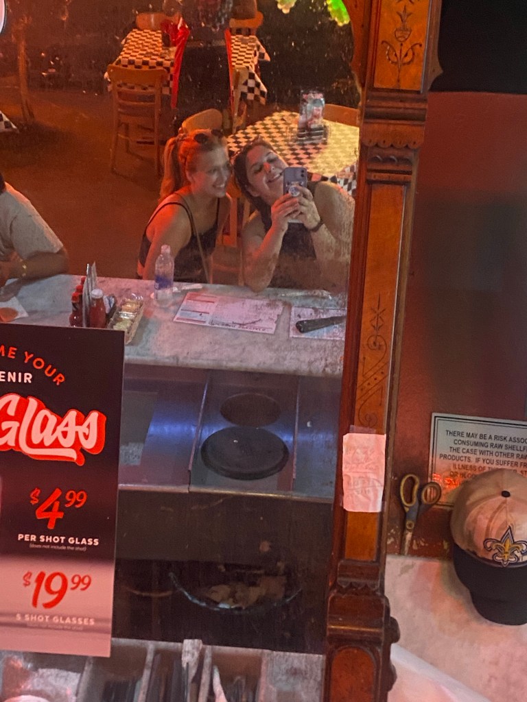 Bourbon Street was filled with SO many bars & we were HOPPIN. One cool thing about Bourbon Street that I didn’t know beforehand was that you are allowed to leave a bar with an alcoholic bev & GO INTO ANOTHER BAR WITH THAT SAME DRINK. This was KEY when trying to hit a bunch of bars without getting toooo drunk & also not spending an arm & a leg on drinks. Another bar that we loved was Beach On Bourbon (pictured). This outdoor patio bar was where we posted up & funny enough we even ran into another bachelorette party! Beach On Bourbon is home to awesome live music & a poppin’ courtyard with a color-changing fountain in the center LOL. This is a nice little escape off of the street tucked behind Voodoo Chicken & Daiquiris. The slushy drinks may look tempting, but best to avoid the sugar rush if you are in it for the long haul LOL.