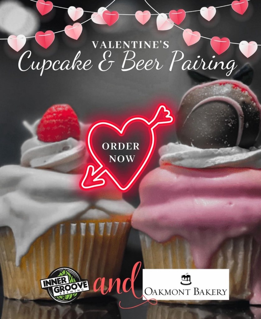 Valentine Cupcake & Beer Pairing // Inner Groove Brewery x Oakmont Bakery // February 17th & 18th pick-up or dine-in at Inner Groove taprooms