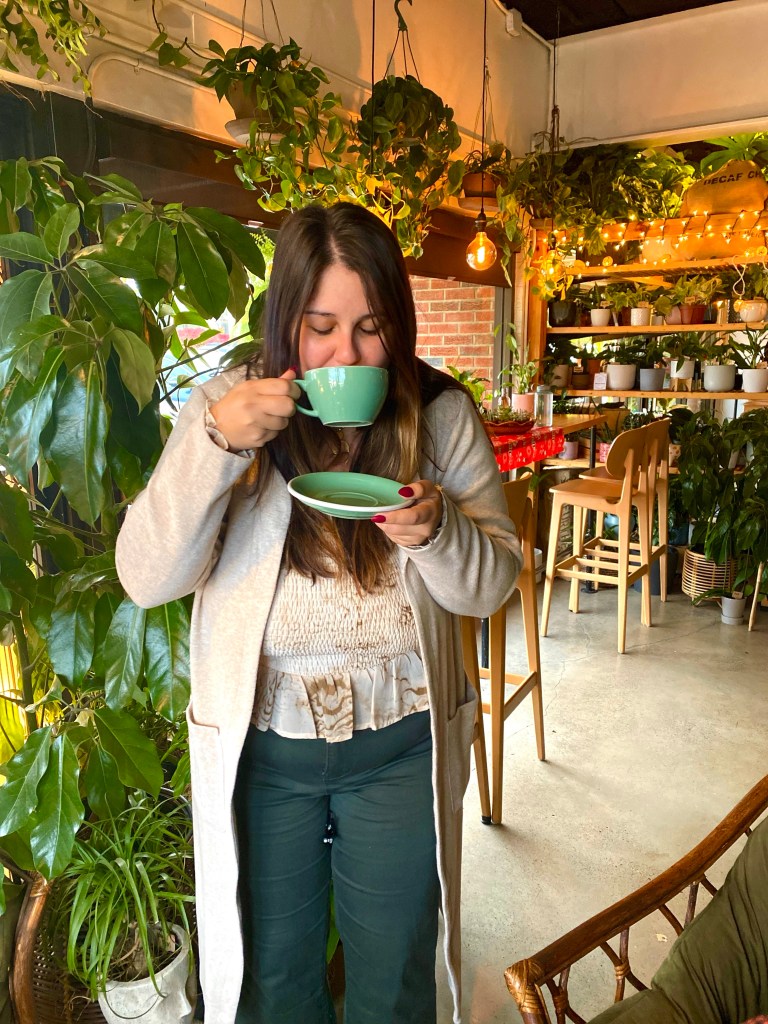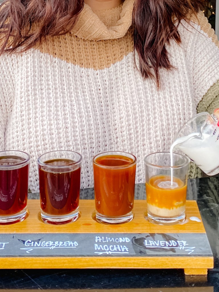 FIRST STOP: Cafe Conmigo for a coffee flight! This spot has such a relaxing vibe with plants all around the shop & other goods from local artisans for sale. Their coffee flights are great because they don’t add a whole lot of craziness to it, but you can ask for your choice of milk on the side. It lets you try out the coffees before & after adding milk which is a huge vibe for me. They also have full size options of typical coffee beverages & some seasonal faves like their pecan pie latte!