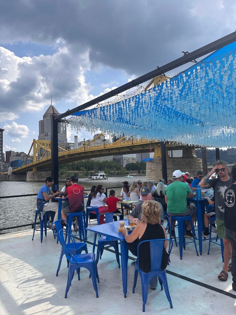 CLOSED FOR SEASON: Shore Thing is Pittsburgh’s newest summer experience courtesy of Riverlife Pittsburgh & Brew Gentlemen! This pop-up brings bites, sips & fun to the north shore right beneath the Clemente bridge. Enjoy beers, cocktails, bbq sandwiches, Hawaiian mac salad, catamaran net lounging, board games, music & more. They even have fitness classes on select mornings! Whether you want a chill vibe to enjoy a book or a place to share a drink amongst friends, this is the spot. The food menu is limited, but there are tons of beers, refreshing cocktails & nonalcoholic options like an Arnold Palmer to enjoy (& yes, kiddos are welcome)! The hanging shell art installation by Fran Ledonio Flaherty that jingles & sways with the breeze is also an absolute vibe. Shore Thing will be sticking around until October so be SHORE to stop by! Hours are the following: Monday closed, Tuesday-Thursday 3-10pm, Friday-Sunday noon-10pm.