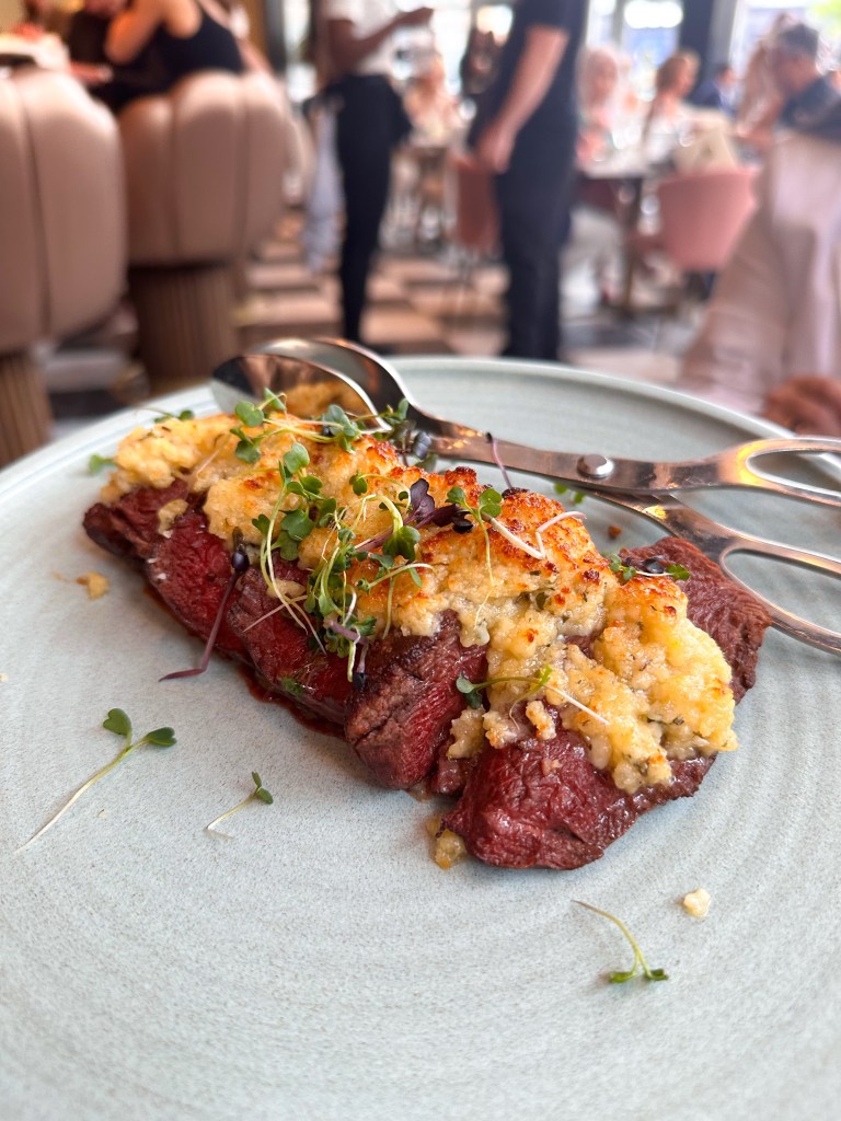 With a heavy focus on small plates & their brilliant cocktail menu, this is the perfect dining experience for the girlies, couples & even solo bar dining! We started with the Passionista & Can’t Elope cocktails. Anytime cantaloupe is involved, I’m absolutely sold & the Can’t Elope cocktail was perfectly executed with refreshing flavors. For small plates, we ordered the Shrimp Ceviche, Pommes Frites & Caviar, Truffle Spaghettios, Mini Lobster Roll & Tuna Sushi Tots. My favorite bites were the Mini Lobster Roll, which had the absolute perfect ratio of shrimp & lobster to brioche roll & the Truffle Spaghettios which provide the nostalgic experience of eating spaghettio shaped pasta, but with an elevated twist.