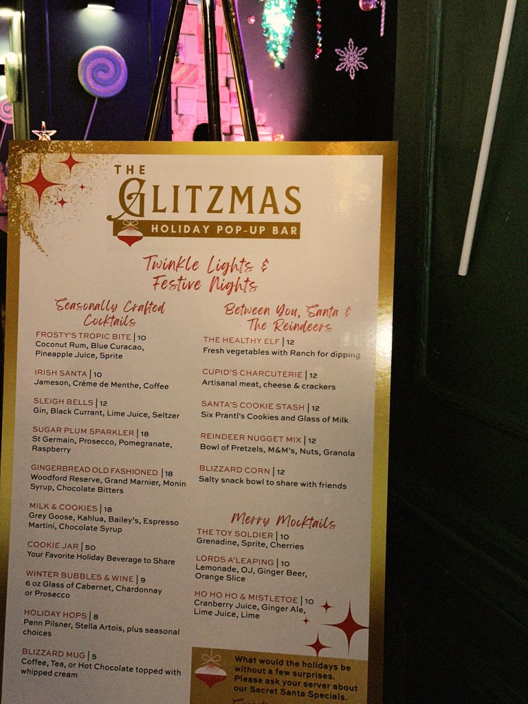 Is There Food?: Yes! Six seasonally themed bites are available – ornament cheeseball, holiday poutine, Christmas tree deviled eggs, gingerbread cheesecake dip, elf on the shelf snack mix & Christmas tree cake.