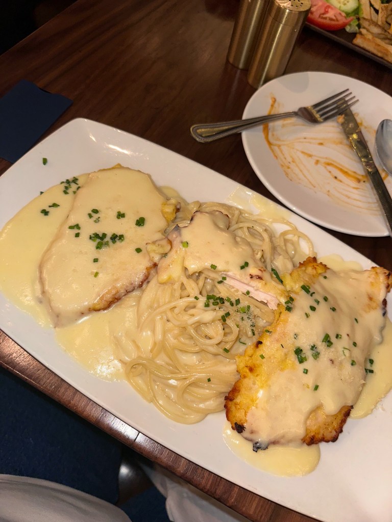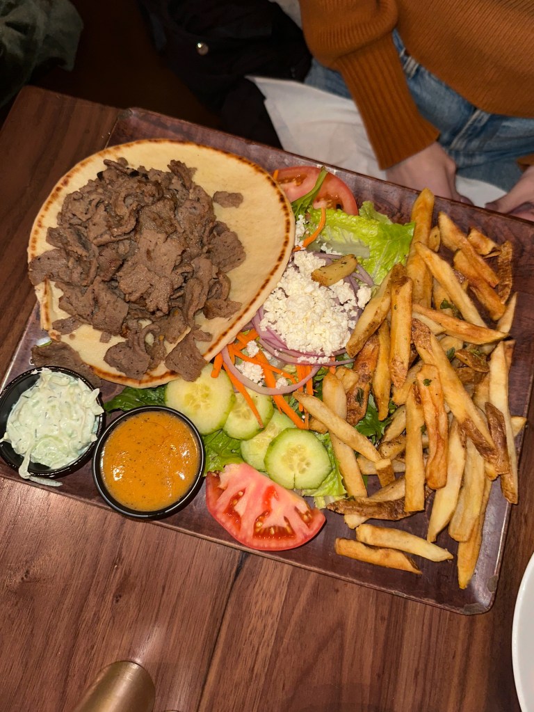 For mains, Lexie got the Gyro Platter which was heaping with tasty gyro meat & all the fix-ins + fries. I of course had to try the Lemon Chicken Romano & I have never had a dish like this with an equal focus on Alfredo & lemon. It was the perfect combo of creamy without being too heavy. Plus the portion was big enough that I took half home! You might be thinking sis, you didn’t get anything traditional Mediterranean & I KNOWWWW. But that’s the beauty of this spot – you can enjoy classic authentic dishes like Chicken Athena, Pastitsio & Moussaka, but also modern restaurant favorites like my dish or a handheld sandwich. Don’t worry though, when I go back for the hummus l’ll be bringing my family & we will roll deep on the Greek food like it’s a church food festival LOL.