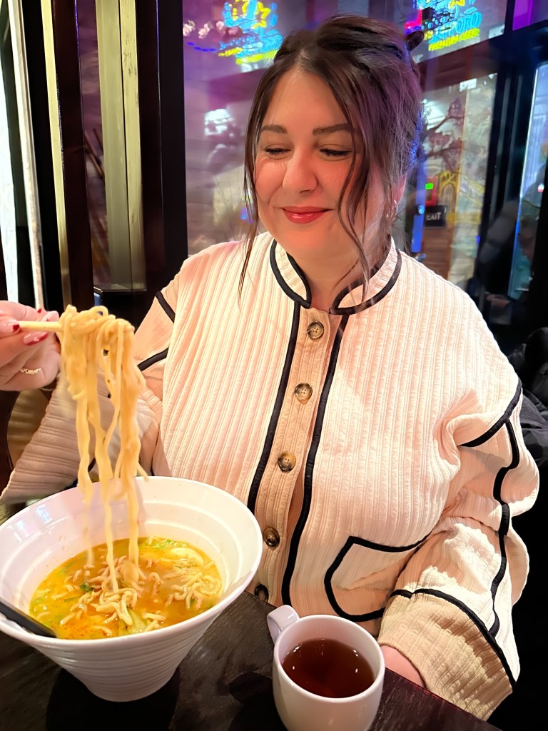 We started with a round of drinks – I ordered a pot of Oolong tea & my friends each ordered a mocktail. Their menu offered alcoholic drinks as well, but we were going for more of a slow, cozy girl evening so hot tea & winter mocktails were the vibe. The ramen was absolutely fabulous. Myself & Lexie got the wonton ramen & Bailey ordered the vegetable ramen. I loved the idea of wonton soup meeting ramen & it DELIVERED. If you wanted to add something else to the ramen aside from the way each dish came, they have add-ins ranging from $1-5. I added a 30 minute egg for $1 because I’m a sucker for eggs in my ramen. The flavors were perfect & just to my liking after I topped it off with their chili oil & soy sauce. This is definitely an affordable spot that feels upscale due to the interior decor. I will DEFINITELY be back.