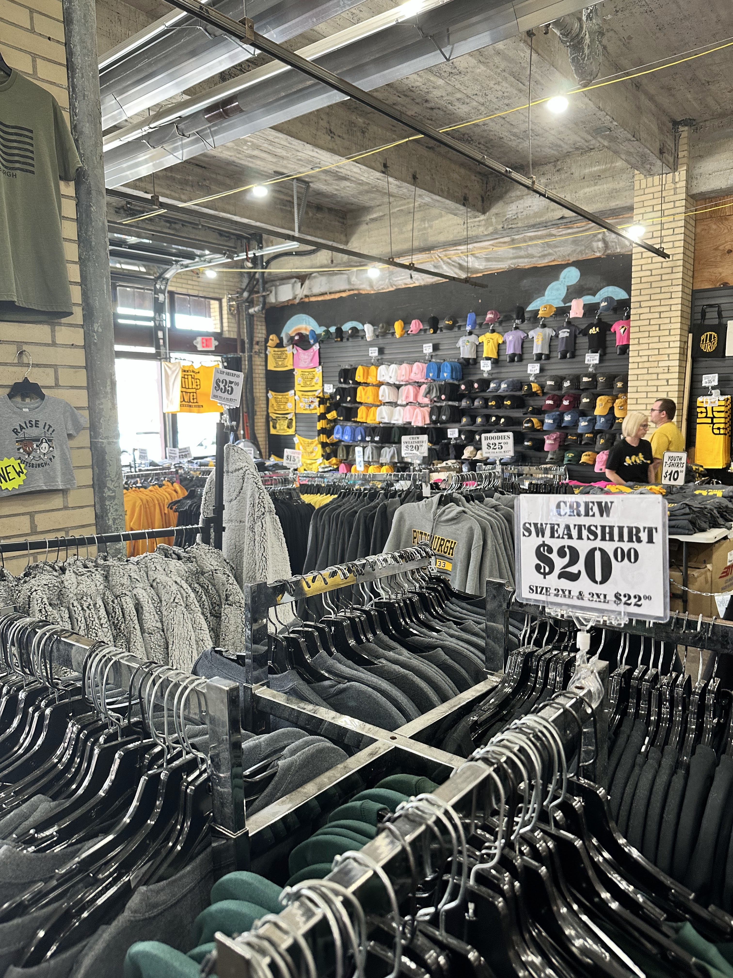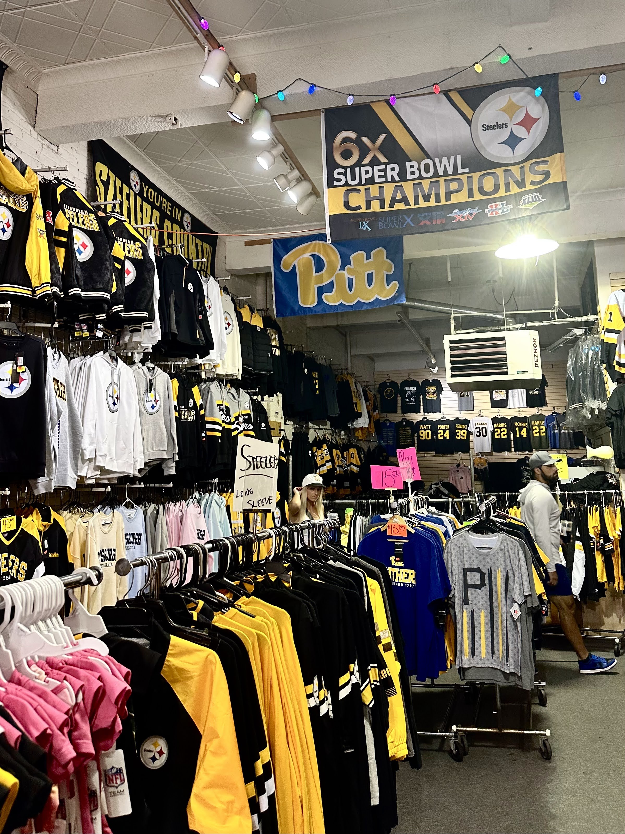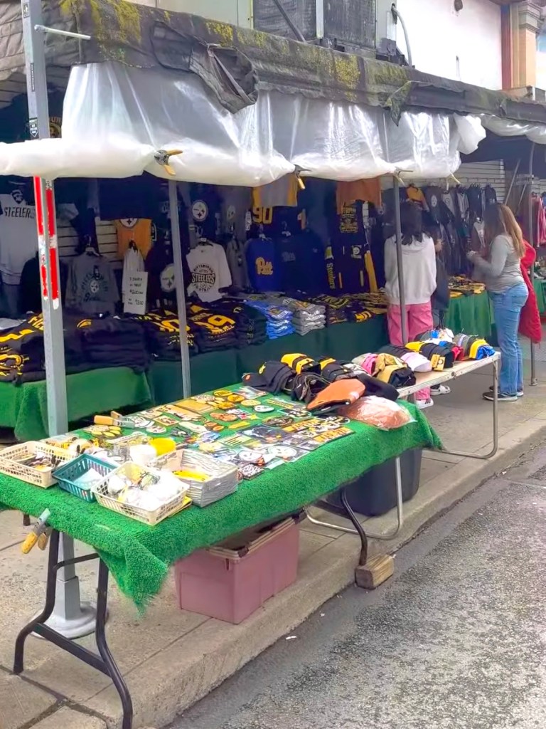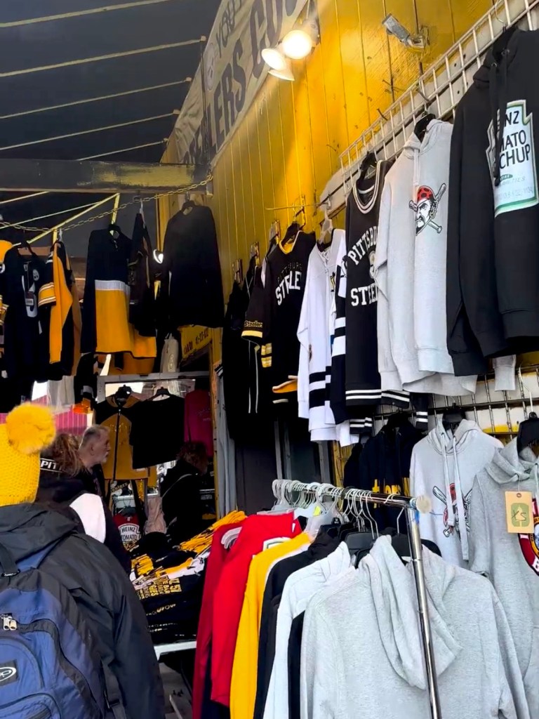 Shopping on Penn Ave in the Strip District is arguably one of the most classic Pittsburgh experiences. It’s here that you will see the heart & soul of the black & gold. Long standing family owned businesses & iconic yinzer shops line the street on both sides. Be sure to stop into shops like Yinzers in the Burgh & PGH Sports to look for classic yinzer collectibles & apparel. You’ll see unique t-shirts (some with raunchy wording 😂), jewelry, socks & other accessories as well as baubles & knick-knacks that scream Pittsburgh sports fan.